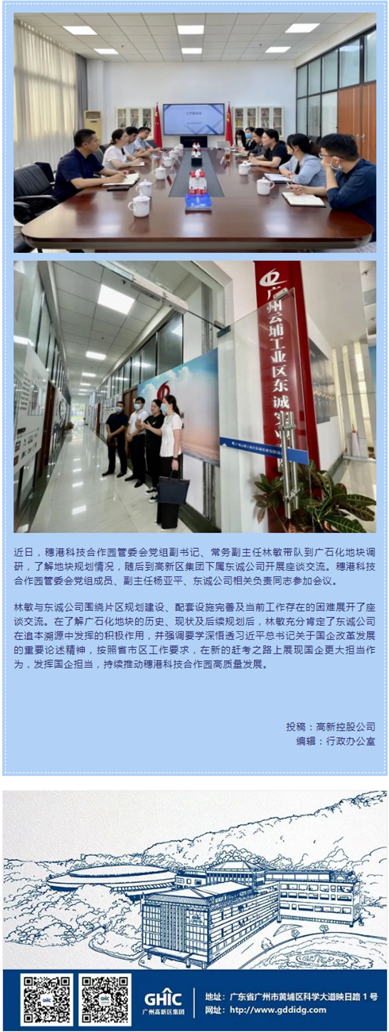 穗港科技合作园管委会党组副书记、常务副主任林敏到高新区集团调研交流